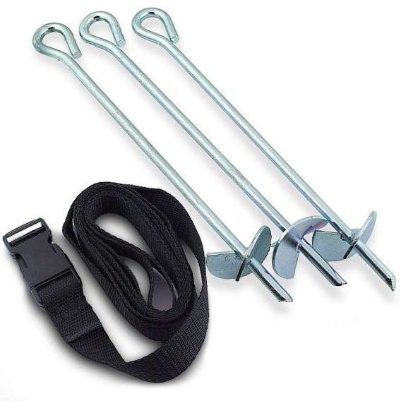 Kotwy pozwolą na przymocowanie trampoliny do miękkiego podłoża. Każda z nóg trampoliny powinna zostać przymocowana osobną kotwą, którą należy wkręcić w podłoże, a następnie zamocować pasy zabezpieczające, którymi spinamy nogi trampoliny.