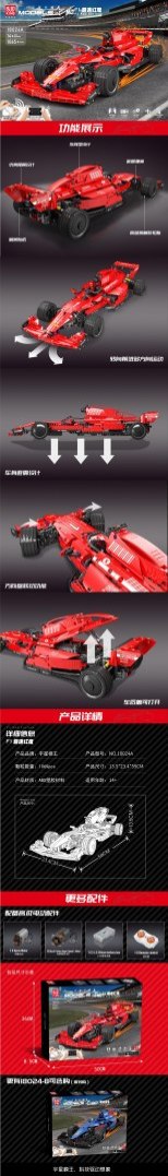 Wysokiej jakości klocki konstrukcyjne dla dzieci od czternastego roku życia. Zestaw składa się z 1065 elementów, z których zbudować można zdalnie sterowany Bolid F1. Pojazd jeździ we wszystkich kierunkach do przodu, do tyłu w prawo i w lewo. Sterować go można za pomocą pilota dołączonego do zestawu lub przy pomocy aplikacji w telefonie. Aplikację można pobrać skanując kod QR znajdujący się na opakowaniu. Dzięki aplikacji można nie tylko poruszać pojazdem, ale również zaprojektować jego ruchy. Posiada gumowe opony, które zapewniają mu dobrą przyczepność do podłoża. Auto zasilane jest akumulatorem 7,4V (znajduje się w zestawie), pilot bateriami typu 2 x AAA 1,5V (brak w zestawie).