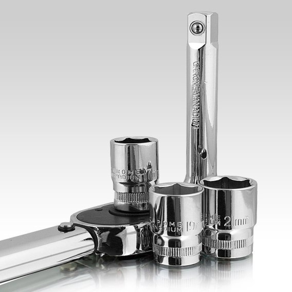 - Następnie należy zablokować pokrętło i wybrać kierunek obrotu grzechotki, wówczas można nakładać odpowiednią nasadkę.