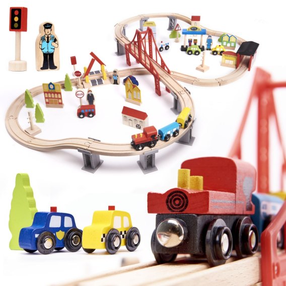 • Kolejka drewniana pociąg tor samochodowy 70 elementów