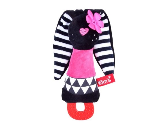 Uroczy szeleszczący króliczek już dziś może stać się najlepszym przyjacielem twojej pociechy. Miękki, kolorowy, welurowy króliczek przeznaczony jest dla noworodka już od pierwszego dnia narodzin. Maskotka jest ślicznie wykończona i wykonana tylko z certyfikowanych materiałów. Specjalnie użyto czarno-białych elementów, by przykuć uwagę noworodka równocześnie rozwijając prawidłowe postrzeganie barw. To nie kwestia mody. Od pewnego czasu mówi o tym większość specjalistów zajmujących się rozwojem dzieci. Welurowa króliczka posiada szeleszczące uszka, które zachęcą do ćwiczenia mięśni dłoni odpowiadających za chwytanie, piszczałkę w brzuszku, która po naciśnięciu skupi uwagę dziecka oraz gryzaczek, który bezpiecznie rozwija umiejętności gryzienia. Przecież każdy rodzic wie, że w pierwszym okresie życia dziecka najważniejsze jest pobudzać zmysły.