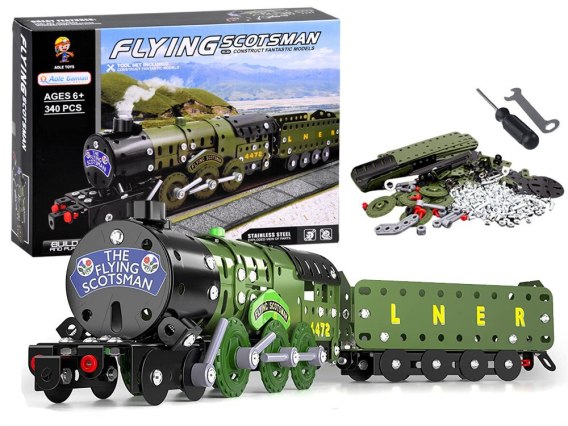 Zestaw konstrukcyjny pozwala na samodzielne zbudowanie sławnej lokomotywy "Flying Scotsman" wraz z wagonem. Zestaw idealny dla każdego fana małego inżyniera i konstruktora.