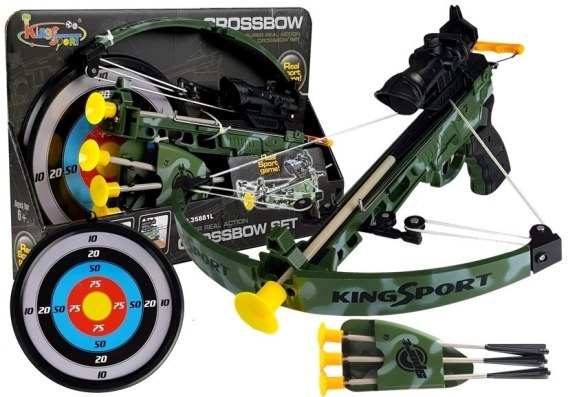 Prezentowana kusza dla dzieci odznacza się masywną konstrukcją i rewelacyjnym wzornictwem: barwami moro, typowymi dla kamuflażu. Budowa zabawki jest bardzo przemyślana, dzięki czemu jest ona poręczna, co jest gwarancją komfortowego, a przede wszystkim lekkiego użytkowania. Strzały zakończone są miękką, gumową przyssawką, co sprawia, że zabawa z ich wykorzystaniem jest bardzo bezpieczna.