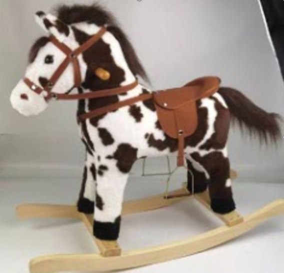 Miękki pluszowy konik na biegunach z efektami dźwiękowymi to propozycja dla dzieci od 3-go roku. Konik posiada profilowane siodło ze strzemionami, lejce, drewniane płozy, dwa drewniane uchwyty oraz czerwoną chustę na szyi. W prawym i lewym uchu konika znajdują się czujniki, które po naciśnięciu uruchomiają odgłosy galopującego konia i odgłosy rżenia. Dodatkowo konik porusza mordką oraz ogonkiem. Zabawka zasilana jest bateriami typu 3 x AA 1.5V (brak w zestawie). |