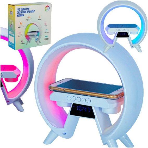 · Funkcje: głośnik, BT, FM, karta SD, AUX, ładowanie bezprzewodowe, RGB, zegarek, budzik