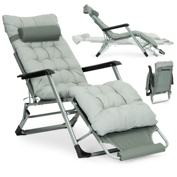 Leżak ogrodowy plażowy 2w1 z poduszką zagłówkiem regulacja podnóżka szary MultiGarden