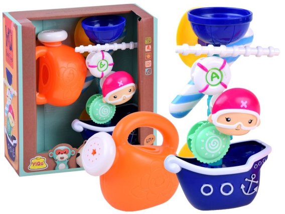 Zabawka do wody toplastikowy statek z kołowrotkami na przyssawkach przyda się podczas każdej kąpieli. Zestaw statek posiada obracane kołowrotki, które wprawiane są w ruch poprzez wodę lejącą się z góry. Kołowrotki można uruchomić wlewając wodę z konewki, ale także bezpośrednio słuchawką prysznicową można je wprowadzić w ruch obrotowy.