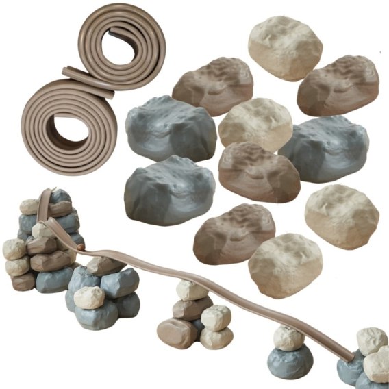 Elastyczny Tor Kulkowy to lekkie, bezpieczne elementy konstrukcyjne wykonane z elastycznego tworzywa sztucznego. Zostały zaprojektowane z myślą o kreatywnej zabawie, umożliwiając budowanie podpór, przeszkód i różnorodnych struktur do torów wyścigowych i eksperymentów z grawitacją. Kamienie można dowolnie układać, tworząc unikalne tory lub konstrukcje wspierające elastyczny tor. Idealnie sprawdzą się jako narzędzie do zabawy w pojedynkę lub w grupie, zachęcając do współpracy i kreatywności.