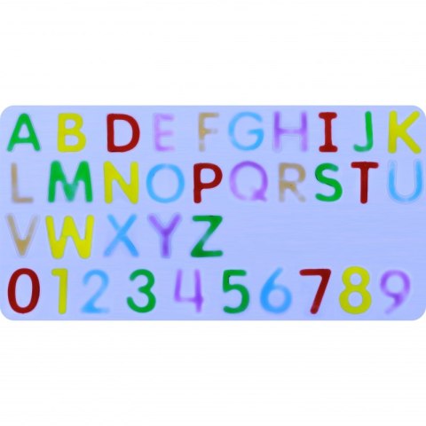 - - zestaw składa się z 36 miękkich elementów - literek z alfabetu i cyferek - w przezroczystych kolorach