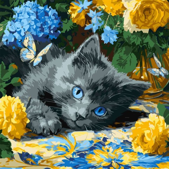 Malowanie po numerach 40 x 40 cm KHO6795 Błękitnookie kocię AP0098