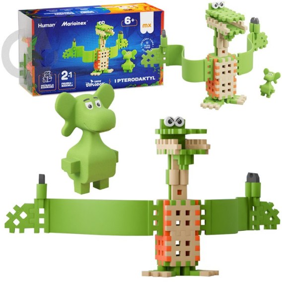 Marioinex Diplodok i Pterodaktyl klocki mini wafle 60 el + figurka ZA5499