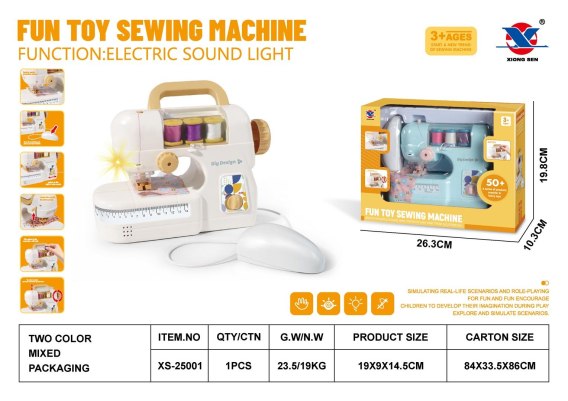 Interaktywna maszyna do szycia z efektami dźwięku i światła dla dzieci od trzeciego roku życia. Zabawka wykonana z solidnych materiałów i bezpieczna dla dziecka. Maszyna posiada igłę w zabudowie, która zabezpiecza, przed skaleczeniem się dziecka. Zabawkę wyposażono w praktyczną myszkę uruchamiającą maszynę, pokrętło do podnoszenia igły i podnośnik stopki. Podczas pracy maszyny, świeci się światełko i słychać odgłosy szycia. W zestawie z maszyną znaleźć możemy również 3 szpulki nici i kawałek materiału. Zabawa maszyną wspomaga rozwój koordynacji wzrokowo-ruchowej i kreatywności. Maszyna zasilana jest bateriami typu 4 x 1,5V AA (brak w zestawie).