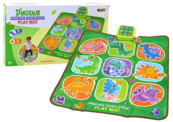 Mata taneczna Dinozaury - Taneczne Wyzwanie to interaktywna zabawka z kolorowymi dinozaurami. Zawiera 5 trybów gry, w tym taniec, granie melodią i pianino. Doskonała zabawa, rozwija koordynację i umiejętności muzyczne.