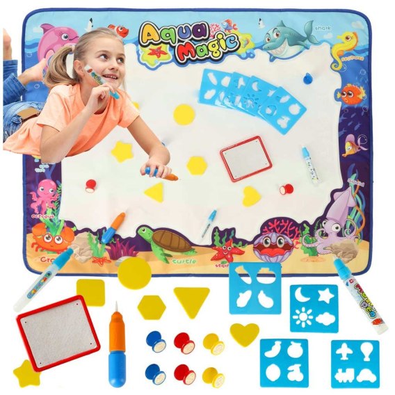 Nie potrzebujesz żadnych kredek, mazaków i farb, aby rysować na macie. Wystarczy, że napełnisz wodą mazak dołączony do zestawu.