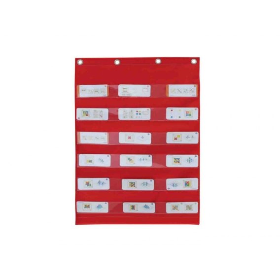 • - 6 rzędów z kieszonkami - w których można eksponować pomoce. Przykładowe wykorzystanie arkusza to układanie zdań z przygotowanych wcześniej karteczek ze słowami. Można w tej sposób ćwiczyć język obcy.