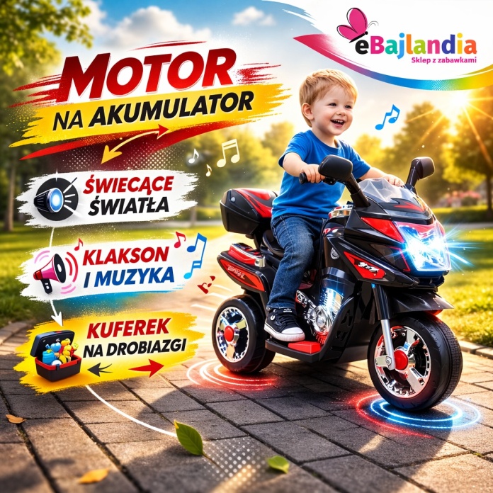 Ten piękny motorek może stać się pierwszym pojazdem w życiu Twojego dziecka i przysporzyć mu niezapomnianych wspomnień z dzieciństwa, do których będzie wracał po latach. Kolorowy motorek- skuterek - dla małego kierowcy.