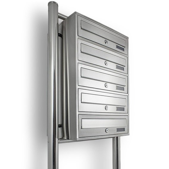 Nowoczesna Euroskrzynka lokatorska inox 5 wrzutów ze stali nierdzewnej