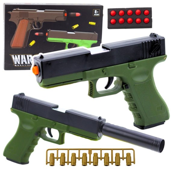 PISTOLET Z NABOJAMI I AMUNICJĄ PIANKOWĄ WARFARE - ZIELONY MODEL