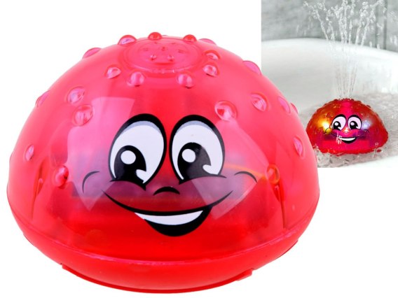 Kula po zanurzeniu w wodzie zostaje automatycznie uruchomiona i tworzy mini fontannę. Pluskającej wodzie towarzyszą kolorowe, zmieniające się światełka. Dodatkową atrakcją są wypustki na kuli imitujące krople wody. Nierówna faktura zachęca dziecko do badanie powierzchni zabawki małymi rączkami.