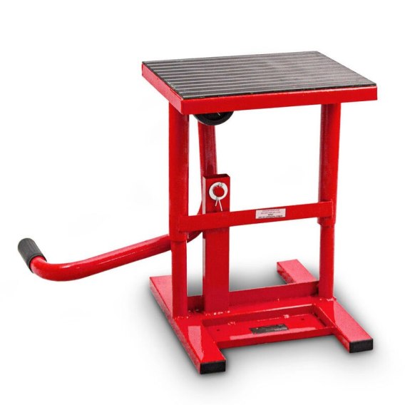 Podnośnik motocyklowy to urządzenie służące do unoszenia motocykla w celu przeprowadzania konserwacji, napraw lub wymiany części,ma solidną konstrukcję, aby zapewnić stabilność podczas pracy. Podnośnik składa się z platformy, na której stawia się motocykl, oraz mechanizmu unoszącego, który pozwala na podnoszenie i opuszczanie motocykla. Istnieje kilka rodzajów podnośników:posiada mechanizm hydrauliczny, który umożliwia płynne podnoszenie pojazdu przy minimalnym wysiłku,podnosi motocykl za jego ramę, umożliwiając łatwy dostęp do obu kół.