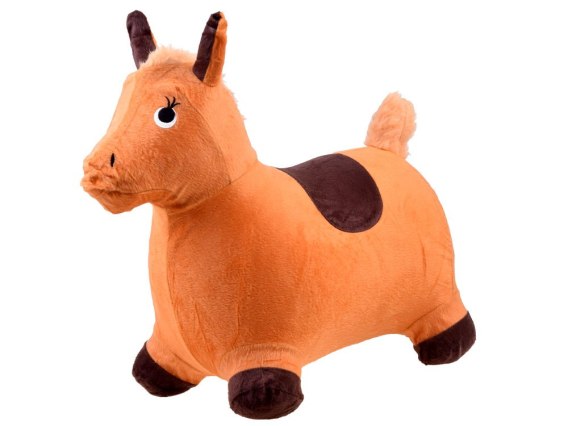 Fikuśny konik do skakania, brykania jest to rewelacyjny pomysł dla dzieci uwielbiających ruch. Dzięki chwytnym uszom czworonoga dziecko może brykać, fikać do woli na uroczym skoczku. Zabawa ze skoczkiem gumowym ćwiczy zmysł równowagi, wspomaga rozwój mięśni i koordynację ruchową. Kształtuje prawidłową postawę i sylwetkę dziecka. Zabawy ruchowe pozwalają na wzmocnienie całego organizmu dziecka. Czworonóg idealny do brykania po domu i ogrodzie. Aby wesoło podskakiwać wystarczy usiąść na nadmuchanego konika, złapać za wystające uszy i ruszyć w podskokach do przodu.