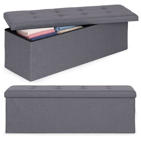 • Pufa pikowana 111x38 cm ze schowkiem tapicerowana ława skrzynia ciemnoszara ModernHome