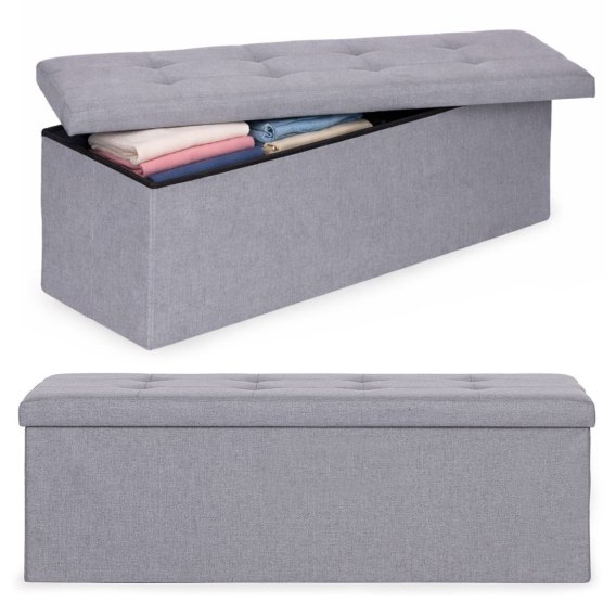 • Pufa pikowana 111x38 cm ze schowkiem tapicerowana ława skrzynia jasnoszara ModernHome