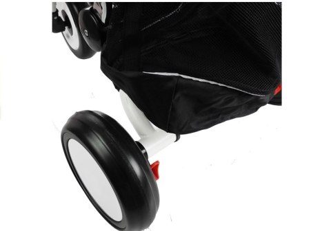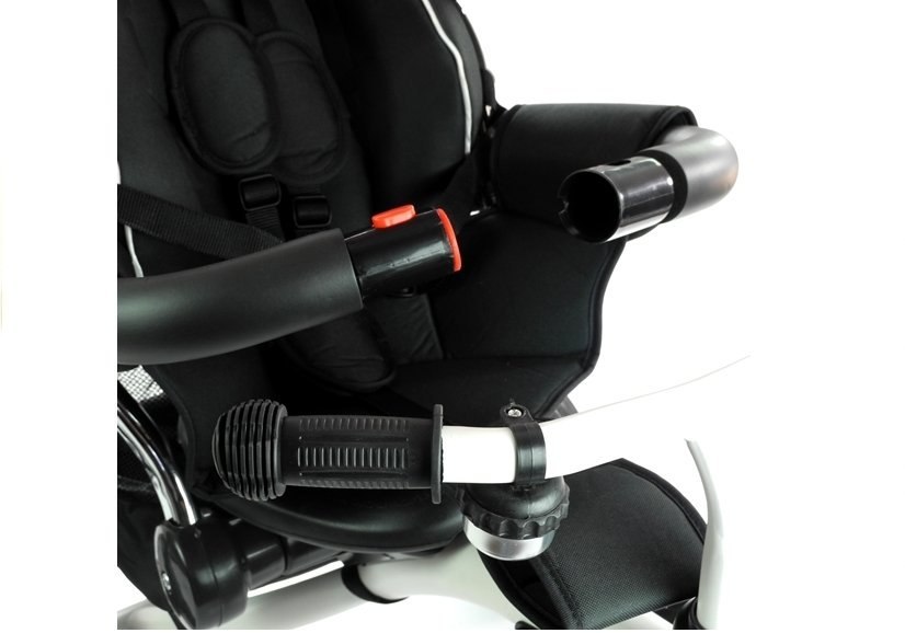Prezentowany rower trójkołowy swą konstrukcją przypomina wózek typu spacerówka — świadczy o tym rozkładany daszek z siatką czy w pełni regulowane oparcie pozwalające na ustawienie pozycji półleżącej, dzięki czemu potowarzyszy on Twojemu maluszkowi od pierwszych lat życia aż do czasu, gdy będzie mógł samodzielnie jeździć na dwukołowym rowerku. Pojazd dla maluchów w soczystym, pomarańczowym odcieniu oparty jest na trzech piankowych kołach, które posiadają wiele zalet — są odporne na przebicia, a ich waga jest dużo niższa, niż w przypadku opon pompowanych.