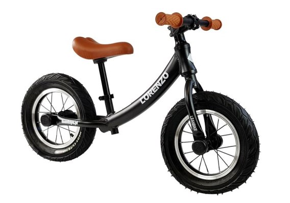 Rowerek osadzony jest na pompowanych kółkach, dzięki czemu poruszanie się na nim jest zarówno bezpieczne jak i wygodne. Rama biegówki wykonana jest ze stali, natomiast felgi z aluminium, dzięki czemu konstrukcja jest naprawdę stabilna. Siodełko wykonane jest z brązowej ekoskóry, dzięki czemu odznacza się na tle czarnej ramy pojazdu. Podobnie sprawa ma się z uchwytami - dzięki umieszczeniu na nich wycięć stylizowanych na wiklinę dłoń dziecka nie będzie się z nich ześlizgiwać.