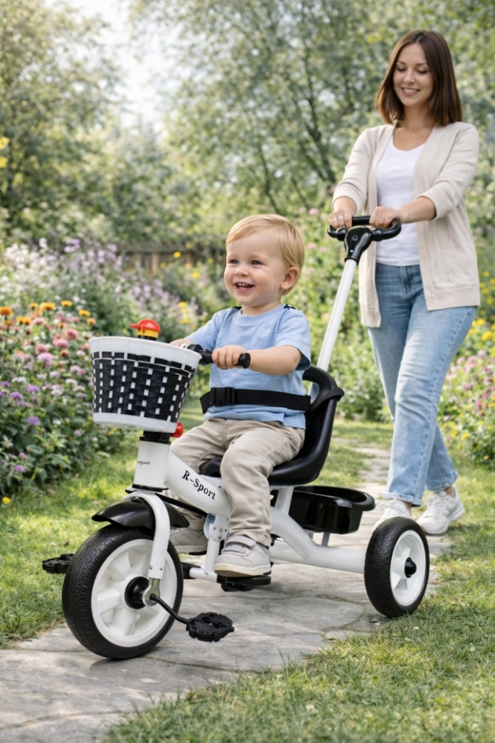 Ten trójkołowy model z rączką do pchania to połączenie bezpieczeństwa, wygody i świetnej zabawy!