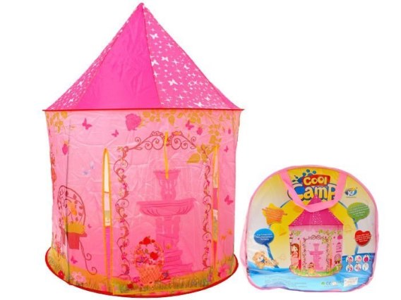Piękny różowy pałac w postaci rozkładanego namiotu dla dziewczynki, zapewne zadowoli każdą małą królewnę.