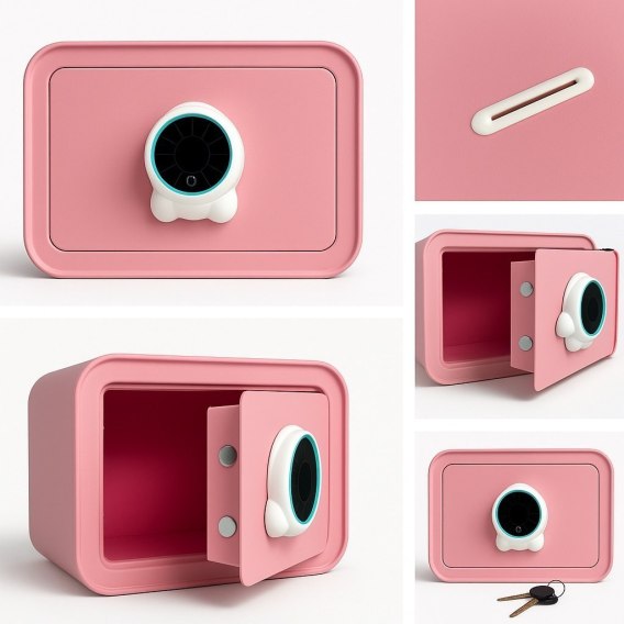 Stylowy i funkcjonalny sejf w kolorze różowym - idealny do biura, pokoju dziecka lub jako oryginalny prezent. Łączy w sobie bezpieczeństwo przechowywania z uroczym designem i dodatkowymi funkcjami!