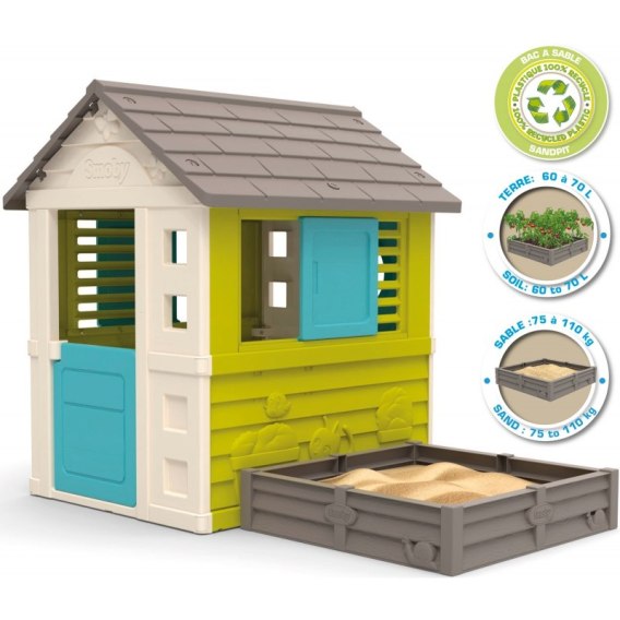 Wraz z domkiem znajduje się piaskownica, która może być również używana jako ogródek warzywny. Może być ona zostać przymocowana do domku lub postawiona w dowolnym innym miejscu. W zestawie znajduje się plandeka do zabezpieczenia podłoża pod piaskownicą. W piaskownicy może pomieścić się aż 100 kg piasku lub 70 kg ziemi.