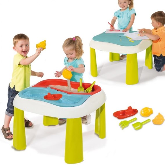 Dzieci uwielbiają zabawkę w piasku lub wodą - teraz jest to możliwe dzięki jednej zabawce. Co ważne - stolik sprawdzi się zarówno w ogrodzie, na balkonie czy w domu. Po skończonej zabawie, stolik można przykryć specjalną pokrywką (dołączoną do zestawu), a następnie bawić się na nim, uczyć czy rysować.
