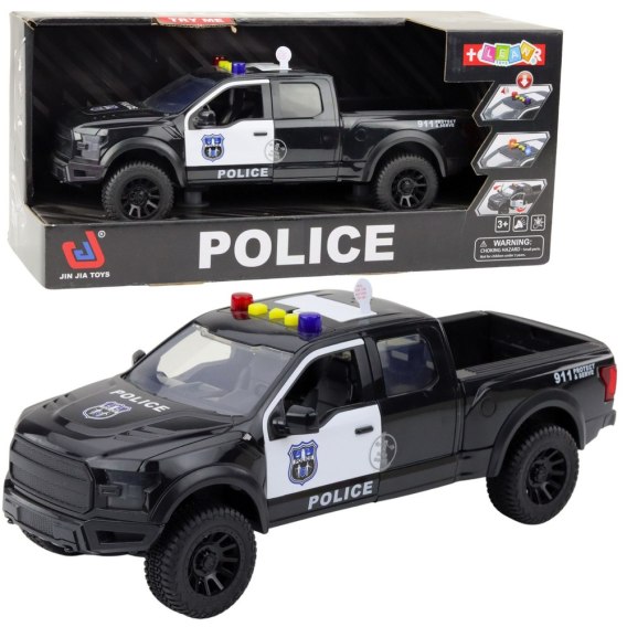 Samochód Terenowy Policyjny Światła Dźwięki Czarny 1:12