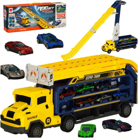 TOR WYŚCIGOWY SAMOCHODOWY LAWETA TRANSPORTER 6 EL. ŻÓŁTY