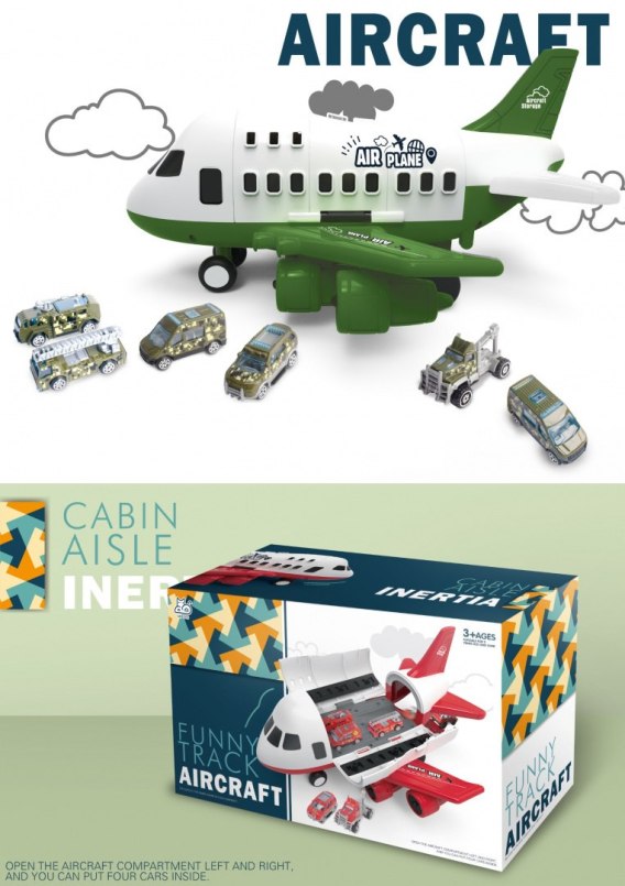 Rewelacyjny samolot militarny, który po rozłożeniu staje się parkingiem dla pojazdów, to zabawka dla dzieci od 3-go roku życia.Samolot posiada po bokach otwieraną przestrzeń transportową - parking, w którym mieści się 6 pojazdów (dołączone do zestawu). Samochodzikami można wjeżdżać i wyjeżdżać na parking przez otwieraną rampę z tyłu samolotu. Zabawka posiada napęd tylny inie wymaga użycia baterii. Funkcje zabawki: - samolot z kółeczkami, - napęd na tylną oś, - parking z autkami, - otwierana rampa z tyłu samolotu, - ruchome elementy w pojazdach militarnych, |