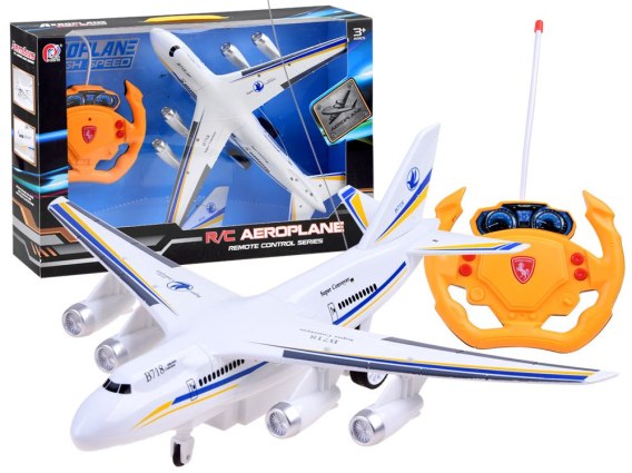 Zdalnie sterowany samolot na pilota to propozycja dla każdego małego fana lotnictwa. Samolot sterowany jest za pomocą pilota w kształcie kierownicy, potrafi jeździć do przodu, do tyłu, skręca w prawo i lewo. Zabawkowy samolot B718 posiada efekty świetlne (czerwono - niebieskie), dzięki czemu zabawa będzie jeszcze bardziej urozmaicona. Zabawka świetnie sobie radzi jeżdżąc po płaskich powierzchniach. Samolot wykonany jest w całości z plastiku w kolorystyce białej z zachowaniem detali B718.