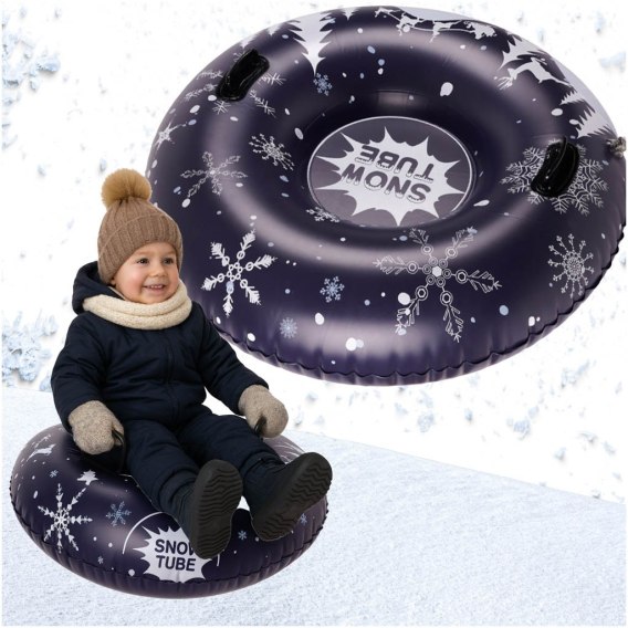 Granatowe koło z ozdobnymi śnieżynkami jest kompaktowe i łatwe w transporcie. Można je zabrać ze sobą na wycieczkę za miasto lub na ferie zimowe. Zjeżdżanie na oponie z pewnością będzie urozmaiceniem aktywności na świeżym powietrzu.