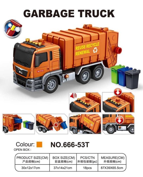 Śmieciarka Pomarańczowa z Funkcją Dźwięku + Akcesoria