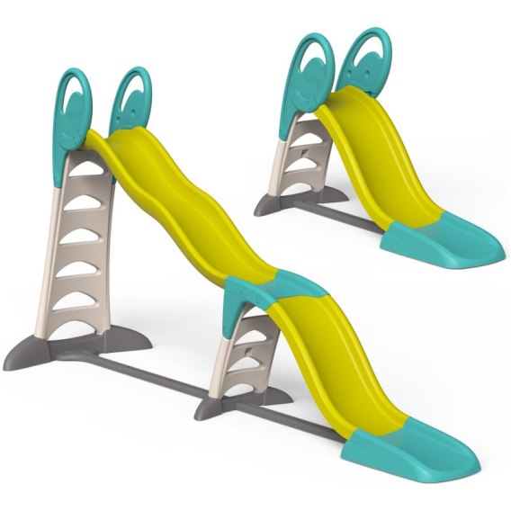 Ta zjeżdżalnia to rewolucja, ponieważ rośnie razem z dziećmi. Jedna zjeżdżalnia ma długość 170 cm i zapewnia dużo frajdy dzieciom już od drugiego roku życia. A ponieważ maluchy szybko rosną, ta innowacyjna zjeżdżalnia po prostu rośnie razem z nimi. Dzięki elementom przedłużającym można ją przekształcić w super zjeżdżalnię trój-szybową o długości 360 cm. Zadbano również o bezpieczeństwo, ponieważ zjeżdżalnia jest ergonomicznie idealnie dopasowana. Szeroka podstawa zapewnia optymalną stabilność a uchwyty i antypoślizgowe stopnie zabezpieczają drabinkę. Produkt odporny na wpływy atmosferyczne i blaknięcie.