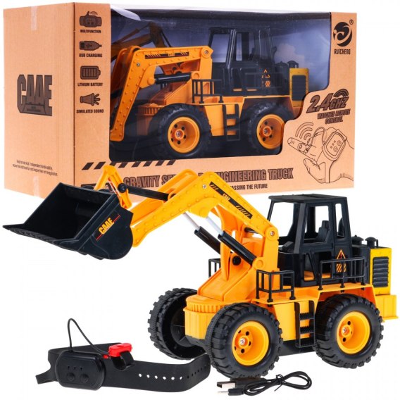 - jazda tył i przód, - skręt w prawo i lewo, - ruchoma łyżka w górę i w dół, - odgłosy budowy, - praca na falach 2,4 GHZ. |