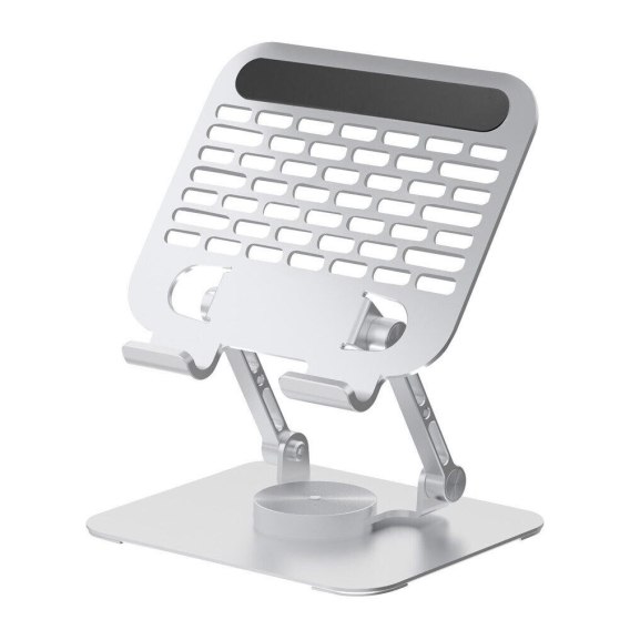 Uchwyt na tablet od 4 do 16 cali, uniwersalny z wysokiej jakości wykonania aluminium. Posiada antypoślizgowy spód co zapewnia stabilność i bezpieczeństwo chwytu. Ma możliwość składania co ułatwia transport i przechowywanie uchwytu. Dzięki regulacji można go obracać w zakresie 360 stopni oraz odchylać stojak do 180 stopni.