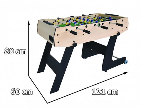 | Opis | Składany stól piłkarzyki z teleskopowymi rączkami, drewno |