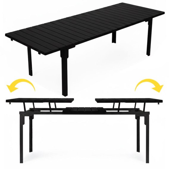Stół ogrodowy rozkładany 180-240 cm do 12 os. stal HDPE czarny MultiGarden