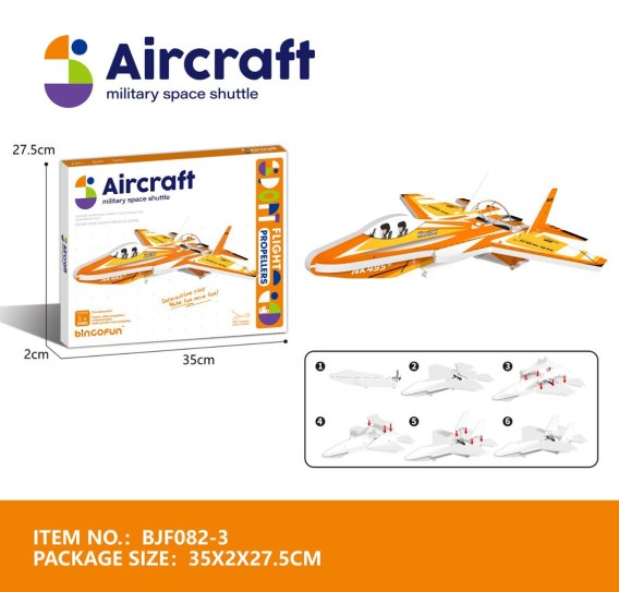 Styropianowy myśliwski samolot z zasilaniem dla dzieci od trzeciego roku życia. Model wykonany został z dbałością o każdy szczegół, ma ultralekką konstrukcję, będzie idealną zabawką do domu czy na zewnątrz. Aby uruchomić myśliwiec, wystarczy nacisnąć przycisk zasilania, a myśliwiec poszybuje. Zabawka zasilana jest akumulatorem typu 3,7 V (w zestawie) i ładowana kablem USB.