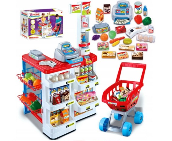 W mgnieniu oka dziecięcy pokój zamienia się w tętniący życiem zabawkowy supermarket. Na półkach czekają kolorowe produkty spożywcze, a w rękach małego sprzedawcy lśni kasa fiskalna do zabawy z otwieraną szufladką i skanerem kodów kreskowych. Obok stoi pojemny wózek sklepowy, gotowy na wielkie zakupy. Ten wyjątkowy zestaw z akcesoriami imitujący zakupy w sklepie pozwala dzieciom wcielić się w rolę kasjera, klienta czy właściciela sklepu spożywczego, oferując godziny realistycznej zabawy i rozwijając wyobraźnię.