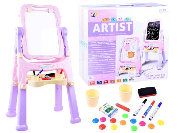 Zestaw do malowania, duża tablica, sztaluga, szkoła, rysowanie, nauka pisania, malowanie, magnesy, pisaki suchościeralne, kreda