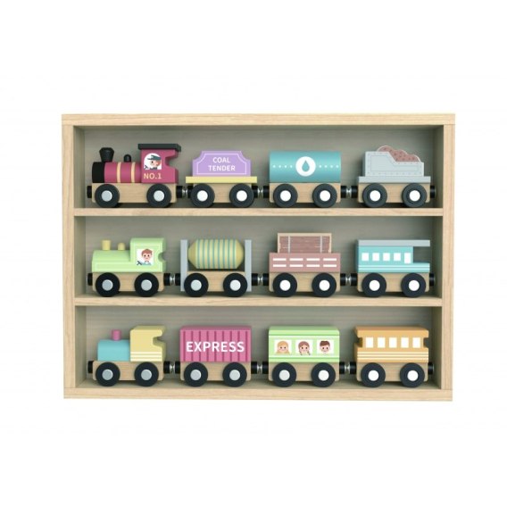 Wszyscy na pokład pociągu ekspresowego. Twoje dziecko będzie się świetnie bawić z tym 12-częściowym zestawem magnetycznych pociągów i wagonów firmy Tooky Toy. Każdy zestaw zawiera 3 pociągi i 9 wagonów, które łączą się za pomocą magnesów. Niezależnie od tego, czy przewozisz węgiel, benzynę czy ludzi, ten zestaw pociągów zachęci dzieci do zabawy. Gdy nie jest używany, zestaw można starannie zapakować i wyeksponować w drewnianym pojemniku, w którym jest zapakowany. Każdy drewniany zestaw pociągów i wagonów firmy Tooky Toy jest wykonany z drewna i wykończony z najwyższą jakością.