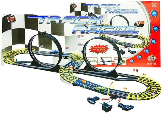 Tor samochodowy o długości 565 cm z pętlami, zasilaczem sieciowym 220 V, bandami które zabezpieczają przed wypadnięciem samochodzików. Tor wykonany jest z bardzo dobrego plastiku. Bardzo łatwy montaż jak i demontaż toru. Posiada w zestawie zasilacz, więc nie wydajesz pieniędzy na baterię. Zabawa polega na tym samym co prawdziwe wyścigi samochodowe. Musisz pierwszy przejechać jak największą ilość okrążeń i dojechać do mety. Dodatkowym elementem zabawy są 2 pętle. Na torach ostre zakręty zaznaczono żółtym kolorem, na torach są namalowane pasy - białym kolorem.